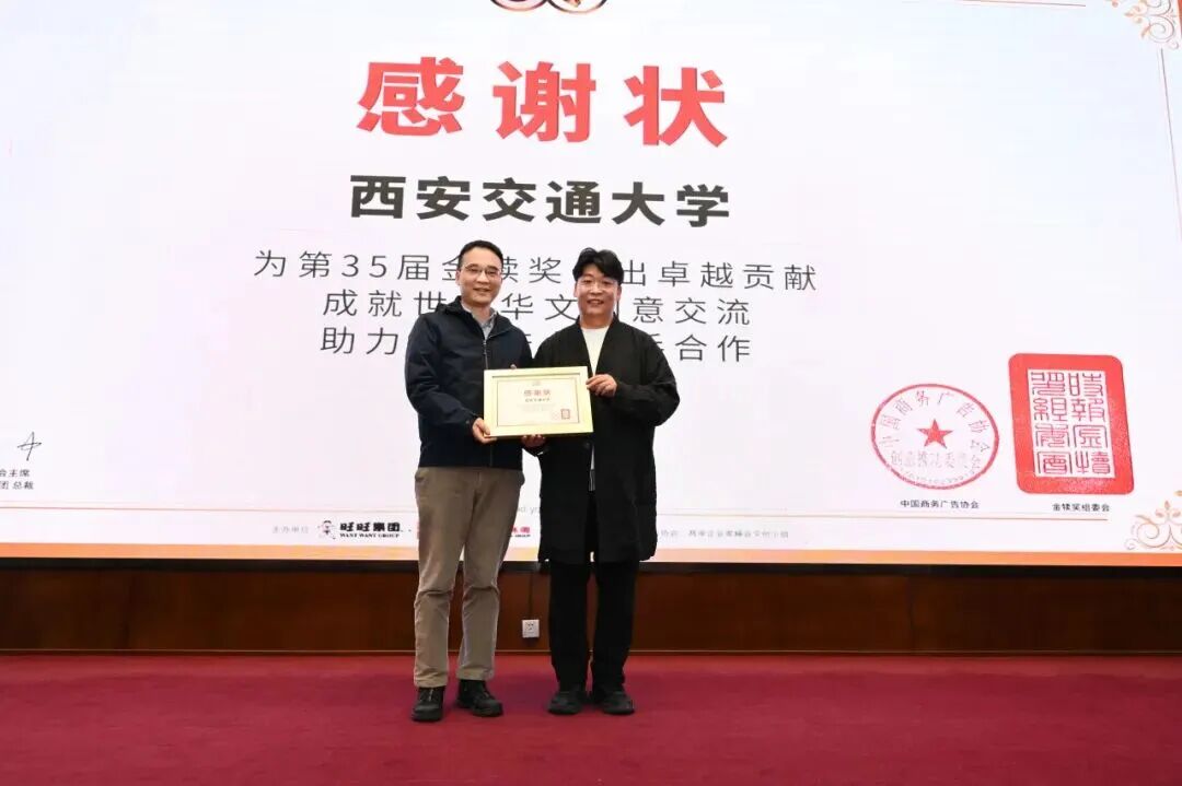 周智秘书长向西安交通大学颁布感激状,感激学校对金犊的悉心护航,新学院做为承办单元代表学校接过了这份荣誉。金犊评审团薛振添先生为陕西地域高校的推广教师代表颁布聘书,致敬那些正在创意教育一线默默耕作的惹人。